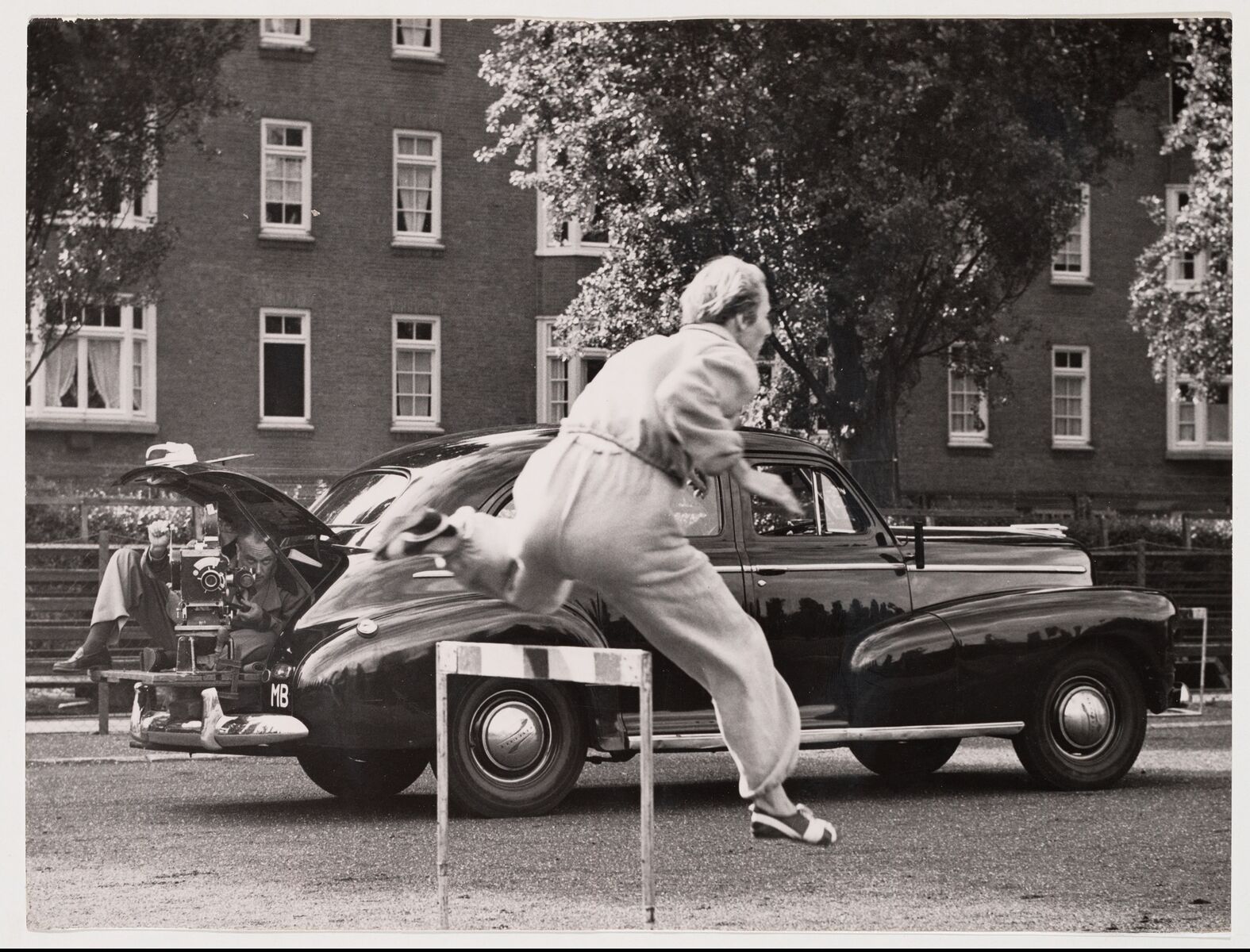 De eerste foto toont Fanny Blankers-Koen tijdens een training, de tweede laat zien hoe zij in de Haarlemmermeerstraat in Amsterdam feestelijk wordt onthaald door haar buurtbewoners. Deze beelden horen bij een van de meest indrukwekkende sportmomenten uit de Nederlandse geschiedenis: haar vier gouden medailles op de Olympische Spelen van 1948 in Londen.