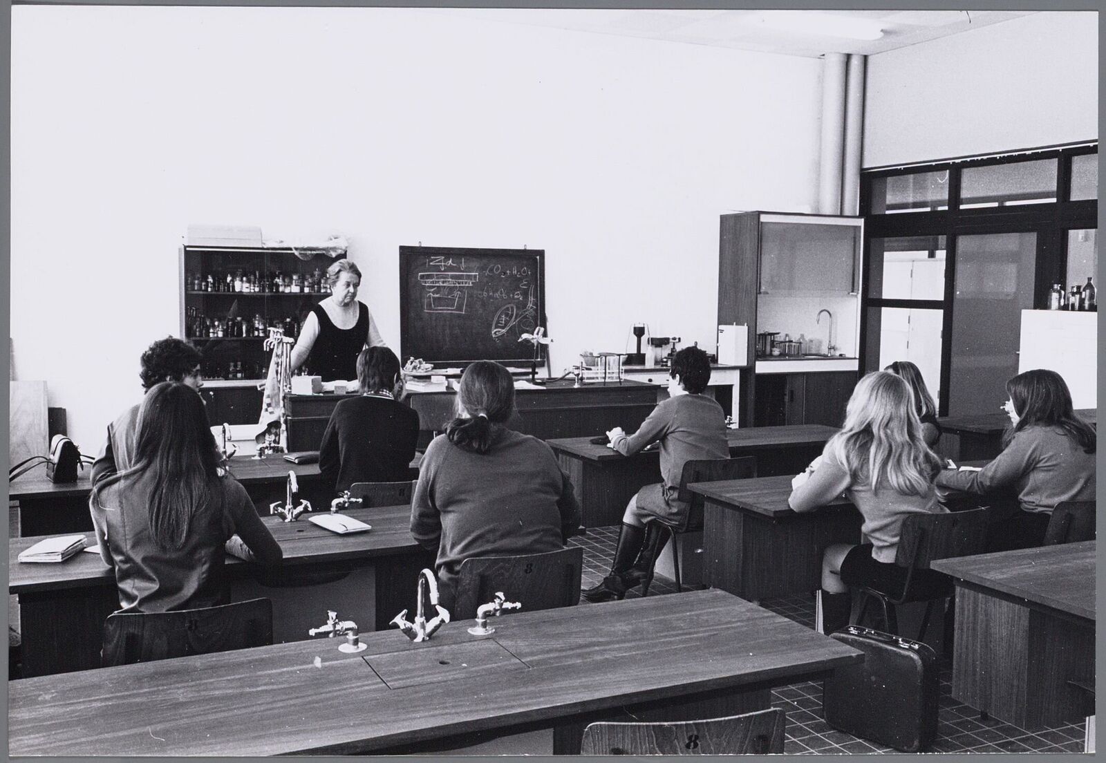Zie je je moeder of oma al zitten? Op deze foto zie je een klaslokaal van een Amsterdamse huishoudschool in de winter van 1970.