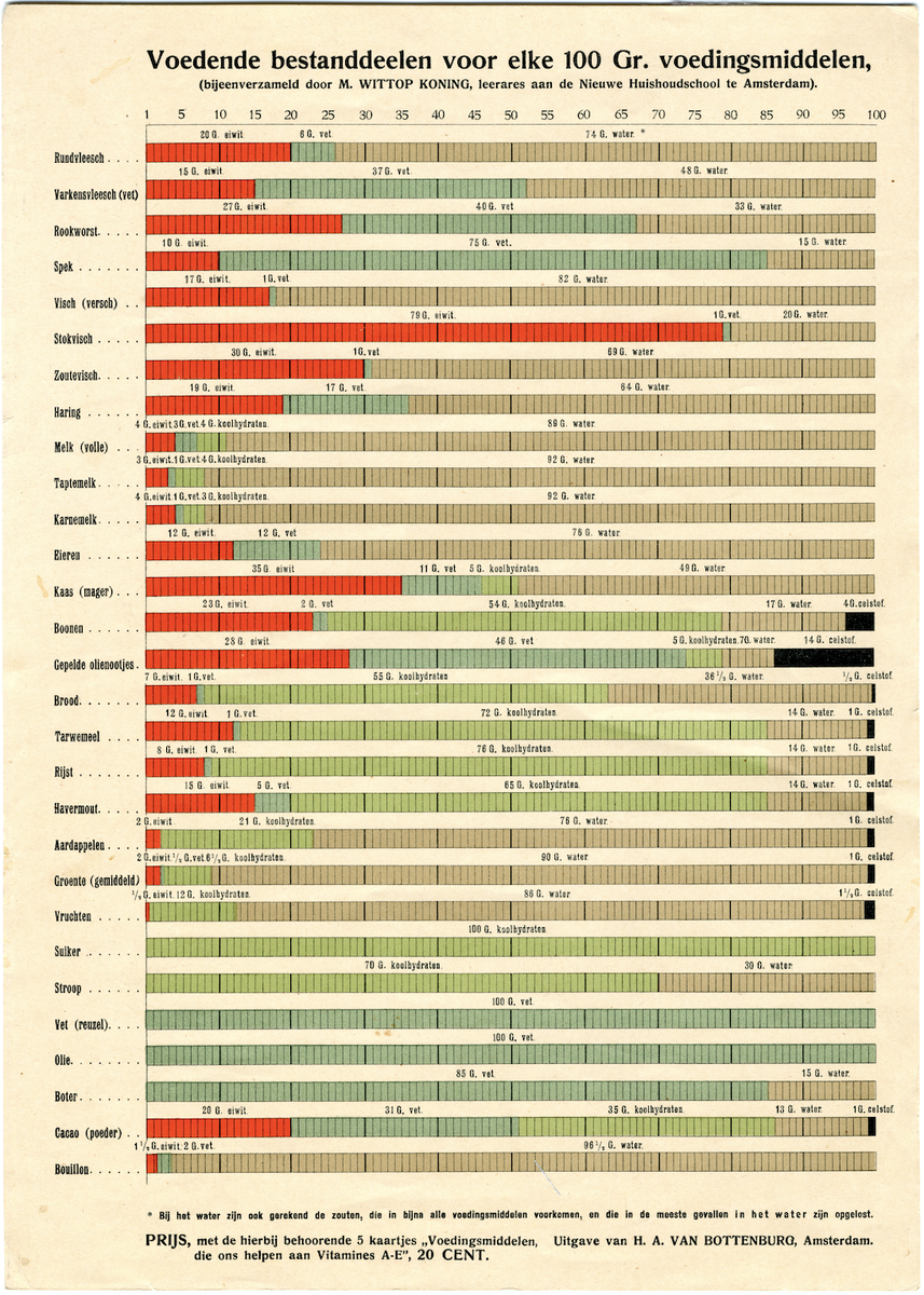 Als je inzoomt op het schoolbord, zie je onder andere een pan met stoom en twee scheikundige formules. Leerlingen die in deze tijd op de huishoudschool zaten, moesten meer leren dan alleen de praktische kanten van het koken, zoals het schillen van aardappels of het bakken van taarten. Zij moesten ook theoretische kennis hebben, de wetenschappelijke informatie achter het koken.
