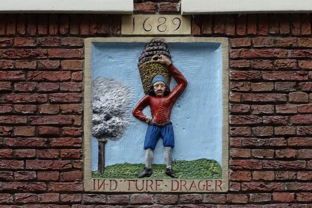 Op deze afbeelding is een gevelsteen te zien van Kerkstraat 76. De steen vertelt het verhaal van een turfdrager die de turf per schuit aanvoerde vanuit de Vinkeveense Plassen om de huizen langs de grachten te verwarmen. Turf is gedroogd veen dat als brandstof werd gebruikt. Het gebruik ervan ging echter gepaard met aanzienlijke lucht- en geurvervuiling.